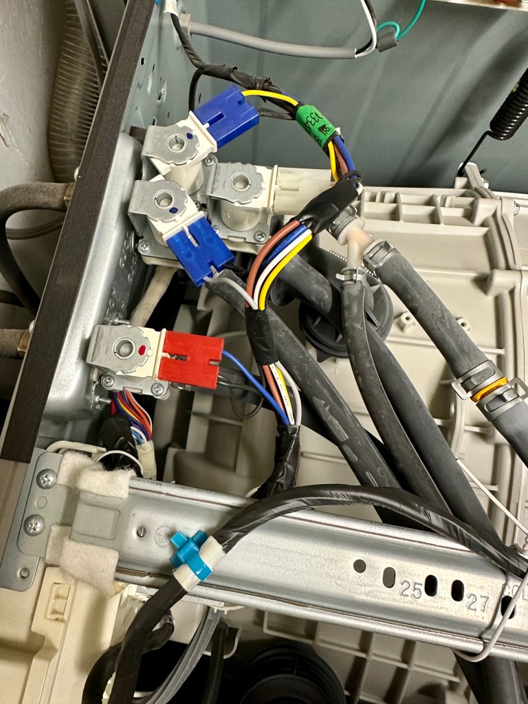 - Turn off the manual water valves behind the washer (hot and cold water)